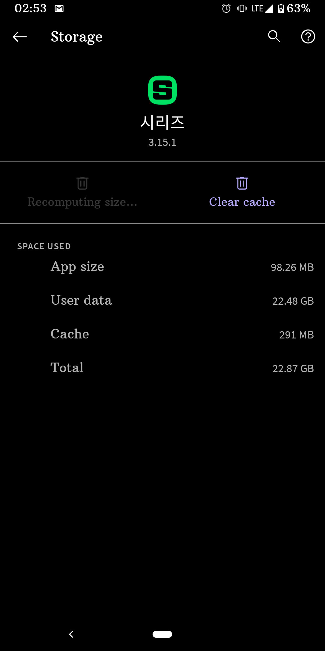 64gb 핸드폰인데, 얼마전부터 계속 90% 95% 거의 남은 용량이 없는 것.