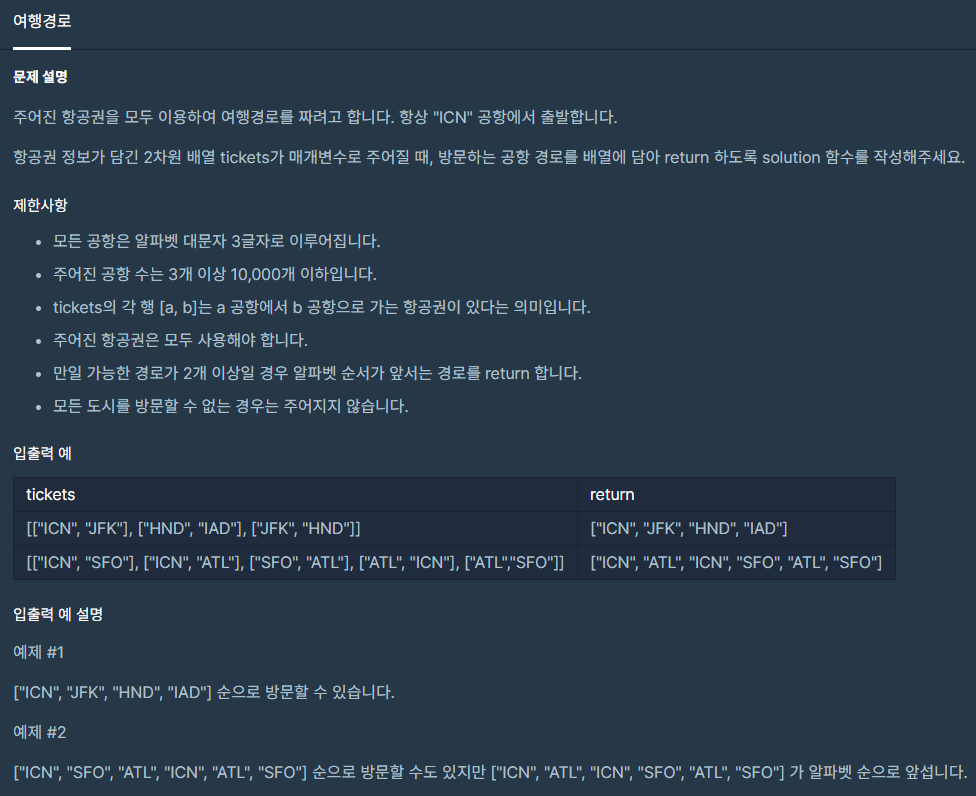 (내가 푼 방법에서는, 들른 공항이름 리스트의 길이가 티켓길이+1 이 되어야 한다는 것. 이게 그 백트래킹에서는 기저사례라고 한다.)